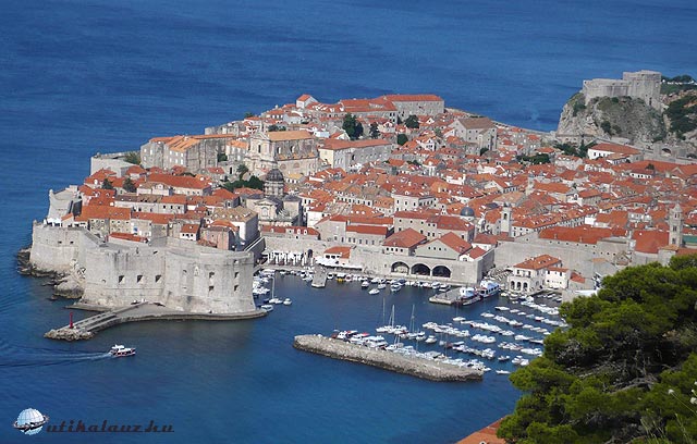 A várfalon kezdtük az ismerkedést Dubrovnik óvárosával. 70 kunát kértek fejenként, hogy felmehessünk. Másfél óra alatt jártuk körbe, fantasztikus a rálátás a városra, gyönyörűek a felújított terrakotta cserepes tetők. Tizenegy órakor üvegaljú motorcsónakba ültünk fejenként 75 kunáért. Már tele volt a csónak, amikor érkezett egy 13 fős olasz csoport és természetesen őket is felengedték a profit és a turista elégedettsége érdekében. Kívülről, a tenger felől körbehajóztuk a város falait, majd célba vettük Lokrum szigetét, ahol nem kötöttünk ki, a part közelében maradtunk és csodálhattuk a tenger élővilágát. Nem tűnt túl változatosnak, néhány halat, tengeri sünt és egy tengeri csillagot láttunk. Elhaladtunk több hatalmas, többemeletes tengerjáró között és egy kalózhajó mellett. Láttunk kajakozó csoportot is. Partot érve, folytattuk a városnézést, bár már elég nagy volt a hőség és a tömeg.