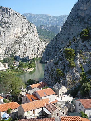 Július 14-én reggel ismét tábort bontottunk és indultunk volna nyomban, ha nem merül le az autónk akkumulátora. Férjem gyorsan keresett honfitársakat, akiknek a segítségével reggeli torna gyanánt betoltunk a kocsit. Járó motor mellett jelentkeztünk ki a kempingből, 571 kunát fizettünk a két éjszakáért. Elindultunk a Cetina kanyonjába, de csak az első alagúton mertünk átmenni, utólag már egy kicsit bánom, hogy nem mentünk tovább, gyönyörű lehet. Ezt követően meg sem álltunk Trogirig.