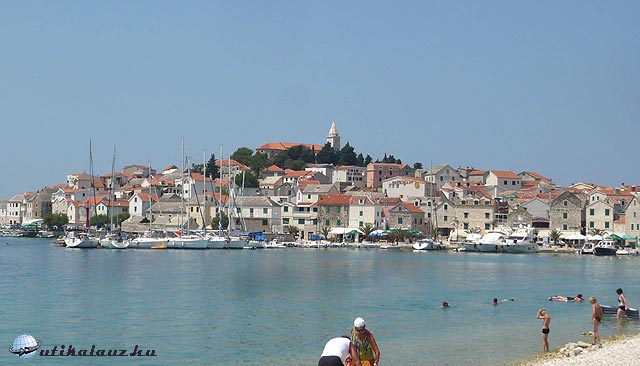A piacon vettünk a gyerekeinknek egy kis szuvenírt, “Pirate of Croatia” feliratú tengerész csíkos trikót 50 kunáért darabját (ugyanez 75 kuna lett volna Dubrovnikban). A következő állomásunk Primosten volt. Festői városka, zsebkendőnyi területen. A déli harangszóra értünk fel a haranglábhoz, gyönyörű a kilátás a környékre onnan.
