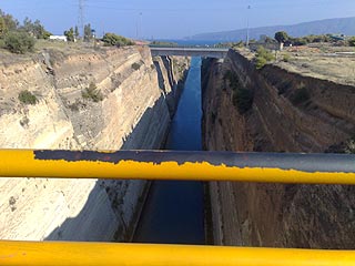 KGST piac-szerűen és kis butikokban is. Ahogy bogarásztam, régibbnél régibb dolgokra akadtam (porcelán, ősi filmfelvevő, több száz éves bútorok, könyvek, stb…) Lenyűgözött teljesen! A kevés kis pénzemből vásárolgattam is. Teljesen elfeledkeztem az időről. Nem is mentünk máshova, hanem hazafelé vettük az irányt. Korinthosznál megnéztük a csatornát. A Korinthoszi-öböl 1893 óta kapcsolódik össze a Szaroni-öböllel. 6 km hosszú, 8 m mély a csatorna és a víz színén 24,5 m széles (a fenekén 21 m). az oldalsó sziklafalak 76 m-esek. A híd felette 45 m-re nyújtózkodik, elég hajmeresztő lenézni róla. De azért megtettük… 🙂 A Korinthoszi-csatorna ötletét már Néró császár javasolta, hogy ne kelljen megkerülniük a hajóknak egész Peloponnészoszt. Állítólag egy aranylapáttal ő maga állt neki az ásásnak. Hatezer zsidó fogollyal dolgoztatott, de az építkezés félbe maradt. A XIX. sz.-i elkészültére mi is büszkék lehetünk, hiszen tervezésében Türr István és Gerstner Béla is részt vett. Vettünk pár képeslapot és mostmár tényleg hazajöttünk. Baba a kocsiban elaludt, mi megérkezés után nem sokkal.