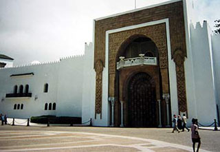 Tevegelés után vissza a buszra, és irány tovább, Tetouan-ba. Itt egy térre érkeztünk, itt láttuk az uralkodó palotáját. (aki miatt a múlt héten 3 napra bezárt minden hivatal, és nem lehetett vízumot intézni) Még most is lobogtak a zászlók az egész városban. A palotát természetesen csak kívülről lehetett megnézni. Így is szép volt, mint ahogy az előtte lévő tér is, gyönyörűen rendben volt tartva.