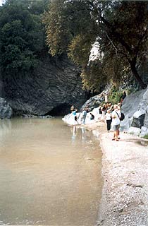 Az üdülőtelepet elhagyva, néhány lépés után máris itt találjuk magunkat a néhány kilométernyi távolságban látható Etna és Taormina között kialakult vidám hangulatú öbölben. Kellemes, fürdésre alkalmas a víz, ám a homokos, aprókavicsos föveny itt nem sárga, hanem szürkés-fekete színű a közelben lévő Etna évezredekkel ezelőtti lávakitöréseinek következtében. Ez a jelenség eleinte egy kicsit szokatlan a fürdővendégek számára, de mindenki gyorsan alkalmazkodik a tengerparton kialakult környezeti adottságokhoz! Rövid napozás, fürdőzés után indulunk vissza az apartmanba, mert délután vár ránk az Alcantara folyó völgye és Taormina.