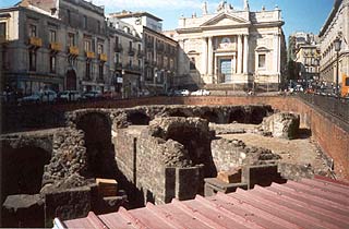 Catania védőszentje St. Agatha. Az ő tiszteletére számtalan templomot emeltek a városban. A szent kincseit és ereklyéit a róla elnevezett dómban őrzik, mely az 1693-as hatalmas földrengés után épült, egy korábbi normann templom alapjaira. A cataniai születésű Vincenzo Bellini (1801-1835) zeneszerző síremléke is itt található. A Dóm téren áll márvány talapzaton a fekete lávakőből készített Elefánt-kút, a város jelképe. Igazi látványosság még az a kápolna a városban, amit egy korabeli börtön mellé építettek, ahol Agatha hosszú évekig, s azután haláláig raboskodott. (II. Roger király feleségül kérte, de Agataha nem akart házasságra lépni vele. Ezért bosszúból élete végéig tartó rabságra ítélte őt.)