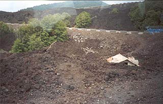 A hegy tövében virágzó kertek, házak, gyümölcsösök. Kicsit magasabban már a szelíd gesztenyefa uralja a vidéket, és a fölött a nyírfák kínálnak kellemes látványt a látogatóknak. S mindezek között a kihűlt láva folyama, melyet – mint már említettem korábban – a szakemberek megfelelő irányba tudnak terelni, hogy ne pusztítson el mindent maga körül. Hiszen egy-egy kitörés után száz évre van szükség, hogy a fák és a növényzet ismét ilyen csodálatos legyen. A buszunk ablakából jól kivehetően, egy ház teteje látszik ki a lávatengerből, ami a tavalyi kitöréskor vette körül az épületet. E háznak a tulajdonosai azóta biztosan nem merészkednek ennyire a hegy közelébe.
