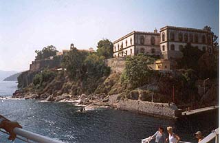 Ám ahogy megyünk a sziget belseje felé, egyre erősebb ez a szag (már nem illat), és hirtelen meglátjuk a tengeröblöt, mellette egy kisebb mélyedéssel, melyben gyógyhatású, kénes, sűrű iszap található. Ebben az iszapban dagonyáznak az emberek, magukra kenik a bűzös iszapot. Így ücsörögnek a sziklába vájt mélyedésekben, ahol apró lyukakon át szivárog a talajból a vulkáni hegy belseje, így szabadulva meg a fölösleges energiától. Mi inkább a tengerben való fürdőzést választjuk, habár itt is találhatóak ilyen picike kénes források (fumarolák), ha az ember rájuk lép, érdekesen csiklandozzák a talpat. A víz kellemesen meleg, néhol szinte forró, ez is vulkanikus jelenség. Az esti fél hetes indulásig még van időnk egy kicsit sétálni a városka belsejében, a hajó indulásakor vágyakozva nézünk vissza a Földközi tenger e csodálatos szigetére.
