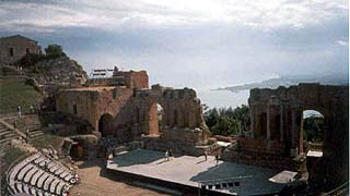 Akusztikája ma is olyan csodálatos, mint amikor épült, s ahol nyaranta rendszeresen színházi előadásokat, hangversenyeket rendeznek mind a mai napig. A háttérben a Naxosi-öböl páratlanul szép partvonala húzódik, az Etna most valahol a távolban, a felhők rengetegébe vész.