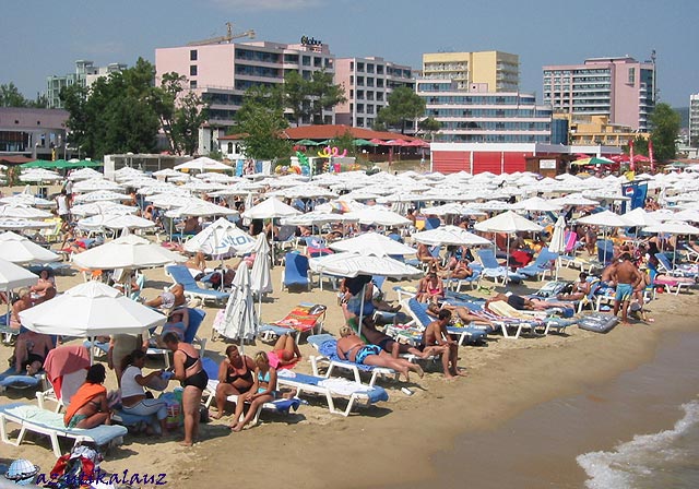 Mindennek Bulgáriához kevés köze van, bolgárokat sem sokat láthatunk itt, inkább turistákat, tipikusan oroszokat, románokat, briteket, németeket és skandinávokat. Napospart és Aranyhomok vendéglátása kifejezetten a package turistákra épít, akik repülővel érkeznek, emiatt meglehetősen röghöz kötöttek — ez a magyarázata a magas áraknak, a magas árak pedig annak, miért nincsenek bolgárok. Ez egy ördögi kör, mert ha nincsenek bolgárok, eleve kicsi a vendégek visszatérésének esélye, tehát nem is érdemes hosszú távra berendezkedni…