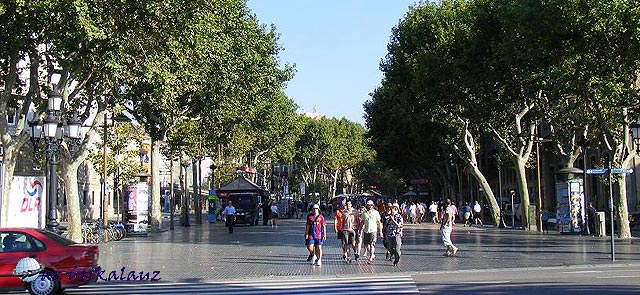A Plaza Catalunyarol nyílik, a híres neves utca a La Rambla. A La Rambla kora délelőttől késő délutánig tele van turistákkal és sétálgató emberekkel. Ha valaki nem szereti a lökdösődést, akkor nem ajánlom neki, hogy ebben az időben menjen oda. Viszont, bár nagy a tömeg szombatonként érdemes kinézni a La Ramblara, mert az utca megtelik mutatványos emberekkel, rengeteg virágot és állatot árulnak. Találhatunk ott madarakat, süniket, nyuszikat, hörcsögöket és mindenféle aranyos kis állatot. Ezen az utcán találhatjuk meg az erotika múzeumot, a Placa Reial-t (klasszicista jellegű árkádos tér), perui alkirálynő palotáját, az operaházat illetve a La Buqueria-t (gyümölcs és halpiac). Értékeinkre nagyon vigyázzunk!