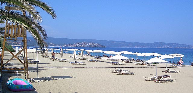 . Tiszta időben látható Athos hegye a másik félsziget végében. Esti kiruccanásokra alkalmasak a közeli települések, Nikiti, Marmaras, Satri, Poligiros. Akár csak nézelődni, vagy vásárlás céljából bármelyik felkereshető, késő este nyitva minden üzlet, áramlik a tömeg, rengeteg a magyar.