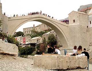 Mostár két külön város maradt. Mi mégis úgy éreztük, hogy a híd elhozta a megbékélést. A hídhoz vezető utcácskákon a nyüzsgő, kavargó tömeg, a hídugrásra váró kíváncsiskodók, a sima köveken csúszkáló turistahad mintha már nem törődne a múlttal. A mostáriak pedig legyenek muzulmán bosnyákok vagy katolikus horvátok, szívesen látják a vendégeket. Mi túlságosan rövid időt töltöttünk a városban, hogy megítéljük, hogy az Öreg híd másolata áthidalta-e már az etnikai különbségeket. De azt érzékeltük, hogy felélesztette a halott várost. S felélesztett egy régi hagyományt is. Az újjáépítést még be sem fejezték, már felelevenítették a hídugrást. A hagyomány szerint a mostári ifjú addig nem vezethette, oltár elé hitvesét, amíg le nem ugrott az Öreg hídról, így bizonyítva bátorságát. Még 1566-ban rendezték meg az első versenyt, amely a hídnak, a város büszkeségének is az ünnepe lett. A fiúk és férfiak ezután már évente bizonyították bátorságukat: “Előbb járni tanulsz meg, azután pedig ugrani” – mondogatták az apák fiaiknak. Amikor a folyóba ágyúzták a hidat, a hetvenéves Emir Balics, aki tizenötéves kora óta ezerszer vetette bele magát a Neretvába az Öreg hídról, elsírta magát, amikor meglátta maradványait. “Olyan érzés volt, mintha egy családtagomat vesztettem volna el.” S az új híd átadása után 2004. július 31-én megtartották a 438. hídugró versenyt. 75 férfi sárga liliommal vonult az Öreg hídra. Virágaikat egyszerre szórták a folyóba, a háború áldozataira, köztük néhány ugróra emlékezve: Majd a bátor férfiak egymás után ugrottak a sziklákkal szabdalt zöld vizű Neretvába.