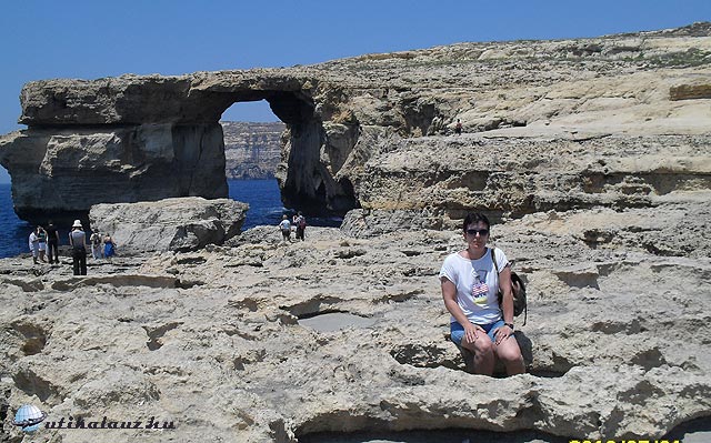 Onnan Xlendi baybe mentünk egy rövid fotózásra. 11-kor már Fontanában sajtot és kaktuszlikőrt kóstoltunk és persze vásároltunk (9,9 euro) is. Ezután ismét közös ebéd volt: leves vagy penne, sült csirke vagy tésztában sült zöldségek és fagyi volt a menü. Innen az Azúr ablak felé vettük az irányt. Ez a másik dolog, amit vétek kihagyni! A fakultatív csónakázás (3,5 euro) után még kisétáltunk a sziklafalhoz és így a másik irányból is átláthattunk az “ablakon”.