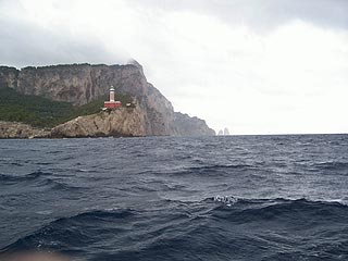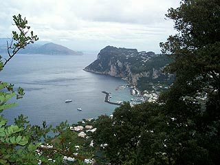 A császárok kedvenc nyaralóhelye Capri szigete. Utunk során a kompon még nem igen éreztük a tenger háborgását. Esős, szeles időben érkeztünk a szigetre, így a sziget körülhajózásáról le kellett mondanunk. Csak a széltől védett partrészt tudtuk behajózni. A nyugati szirten ülő kisfiú szobra fogadja az érkezőket. Kissé tovább hajóztunk, de a hullámzás visszafordulásra késztette kis hajónkat. Újra elhaladtunk a kikötő mellett, végig a sziklás, barlangokkal tarkított partrészen, majd lassítva elhaladtunk az ókori kikötő mellett. Keleten a szélárnyékból kihajózva, újabb ringatás után visszatértünk a kikötőbe.
