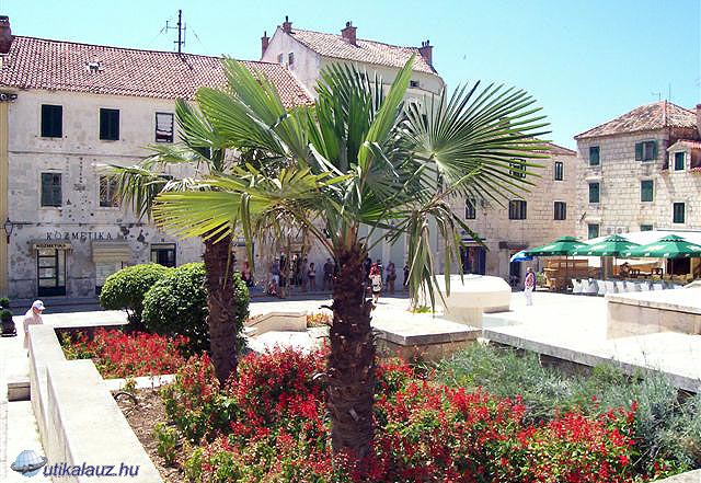 Ma már a helyiséget raktárnak használja egy kiülős (amúgy rangos) étterem, ahol a későbbiek során vacsoráztunk is. Örömmel állapítottam meg, hogy a dalmát prsut (sonka) finom és hamisítatlan. Bár az óváros a régi, de sokkal nagyobb a forgalom. A meghitt keskeny utcák, a vár, a virágok, füge- és pálmafák, a mindent kínáló piac, boltok és éttermek.