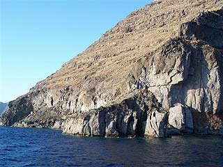 Utolsó estére-lányunk születésnapja volt – befizettünk egy romantikus esti hajókirándulásra, egy felejthetetlen naplemente-nézésre indultunk a vulkáni öbölbe. Félelmetes, meredek úton vittek busszal bennünket a kikötőbe. Hajóra szálltunk.