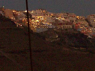 Ebéd után gyerekeink felkaptattak a 805 lépcsőn, mi kitartottunk a felvonó mellett. Fenn még élveztük egy kicsit az egyedülálló kilátást, majd elindultunk Oia-ba.
