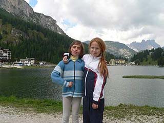 Tirolon keresztül végre elértük az olasz határt, melyet csak egy tábla jelzett. Az észak-olasz Alpokon keresztül haladva csodaszép hegyeket láttunk.(Szebbeket mint Ausztriában.) Kb. 11 óra körül elérkeztünk egy csodaszép Auronzo-Missurina nevű helyre. Ide már turista útvonalat követve jutottunk. Ez egy kb.1000 m magasan lévő zöld vizű tó, partját hatalmas hegyek (2000-2500 m) övezik és csodaszép szállodák vannak körbe. Itt is felvonóztunk. Mikor felértünk a hegytetőre szinte tátva maradt a szánk olyan szép panorámában volt részünk.