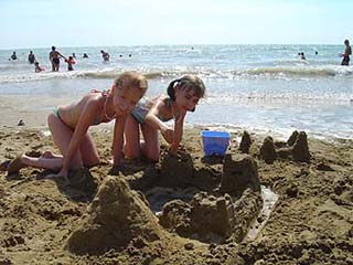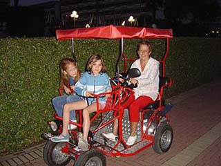 Azzal ütötték el az időt, hogy hatalmas lyukakat ástak a homokba. Egyik alkalommal békésen olvasgatok, egyszer csak nyugágyastul beleborultam a mögém és alám ásott gödörbe. Később önként belefeküdve teljesen eltemettek. Sokat lubickoltunk. Este béreltünk egy elektromos, négykerekű biciklit, mellyel felfedeztük a város távolabbi részeit is.