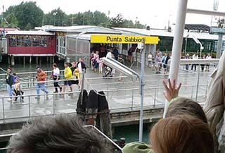 Elmentünk kirándulni Velencébe. Azt tanácsolták hajóval érdemes menni Punto Sabiinie-ből, ezért ezt választottuk. Autóban ez az út Bibionétől kb. 70 km. Jó volt a kirándulás időzítése, mert ez a nap nem volt kimondottan strandidő. Kétszer is esett az eső, de igazából nem tudta elrontani a napunkat. Megvásároltuk a jegyeket. A hajóállomás mellett van egy parkoló, ami fizetős. A mólóhoz mindig csak egy hajó tud kikötni. Így nem lehet eltéveszteni. A hajó minden óra harminc perckor van Punto Sabienin és egészkor indul Velencéből. A jegy retur volt.