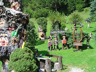 A pályán gyorsan haladtunk Grazig. Itt elhagytuk a kényelmes és gyors közlekedési lehetőséget, és bevettük magunkat az Alpokba. Alig 20 perces autózás után elértük Salla községet. Ennek a kis osztrák falunak a nevezetessége, hogy ott él egy fafaragó művész, aki különböző farönkökből és odvas fákból szobrokat farag. A szobrok a falu központján található vendéglő melletti domboldalon vannak elhelyezve. Belépő nincs, bárki szabadon megtekintheti. Ötletes, jópofa dolgokat lehet látni. Van ott fából rendőr (igazi fakabát), “nagy”mellű hölgy és egy akkora fafej, hogy a gyerekek mindketten (10 évesek) a szájából integettek, míg mi fotóztuk őket. Közben hamisítatlan osztrák sramli szólt. Vannak asztalok és padok, piknikezésre is kiváló hely. Érdemes megállni és megnézni, ha valaki arra jár.