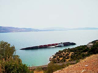 Agrinón át Artáig hegyes-völgyes vidéken haladtunk. Balra szép öböl volt látható, ahol szívesen elidőztünk volna, de már igencsak fogytán volt a pénzkeretünk, így tovább kellett mennünk Ioannina felé. Artánál az egyik táblát lelopták, így rossz irányban továbbhaladva bekeveredtünk a hegyek közé. Egyre szűkebb, és egyre kanyargósabb hegyi utakon mentünk, mígnem már majdnem elfogyott a benzinünk. Egy kis hegyi faluban lévő benzinkúthoz begurulva akartam 95-öst tölteni, de nem működött a pisztoly. A kutas kijött, rázta a fejét és mondta, hogy csak dízel van. Na ennyire vidékre keveredtünk!!! Mondtam neki, hogy Ioanninába tartok, erre fejét fogva mutatta, hogy 50 km vissza a hegyeken keresztül Artáig és ott jobbra. Visszafelé azon imádkoztam, hogy nehogy kifogyjon a benzin. Visszaértünk Artába, ahol teletöltöttük a tankot, és 1 óra alatt elértünk Ioannináig. Ioanninától jó állapotú gyorsforgalmi út vezet Igumenitsa városkáig, ahonnan komppal át lehet menni a nem messze fekvő Korfu szigetére. Mi Ioanninánál nam Korfu, hanem Trikkala felé, azaz a szárazföld belseje felé indultunk el. Az albán határ közelségét az egyre több albán rendszámú Mercédes jelezte. Érdekes, csak Mercédeszek voltak albán rendszámúak. Jól élhetnek odaát ezek a mercisek, gondoltuk. Ioannina és Trikkala közt az út lepipálja Kalamata és Spárta közti hegyi utat. Iszonyúúúúúúúúú! Már olyan mértékben gyűlöltem a hegyi kanyargást, hogy szinte fájt. A térkép szerint az autópálya épül, de tényleg csak épül. Én ilyet még nem láttam. Úgy sorjáznak a 2-3000 méteres hegycsúcsok mint nyolcvan éves nagypapám szülinapi tortáján a gyertyák.