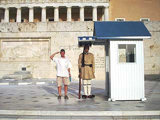Aki szereti a történelmet, napokat tölthet itt el. Palaka turistagyár. Kis sikátoros utcák, szuvenír bolt hegyek, mozdulni nem lehet a tömegtől. A fent említett sétány egy térről indul, és egy többsávos főútig tart. A főút mellett található Zeusz templomának maradványa, valamint a Hadriánus Kapu. Nem messze van a márványstadion, az ellenkező irányba pedig a parlament. Pont őrségváltás volt. Utána odaálltam a leváltott őr mellé, és tisztelegtem. Közben a menyasszonyom gyorsan lefényképezett. A tisztelgés pillanatában az őr hatalmasat vert a földre a puskájával. Egy kéksapkás katonai rendész üvöltve rohant, hogy tilos tisztelegni, azonnal hagyjam abba! És leparancsolt az őr mellől. Ha látta volna, hogy a menyasszonyom fényképezett, illetve nem digit gép lett volna, biztos kitépte volna a filmet. A parlament mögött egy hatalmas