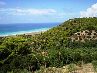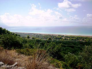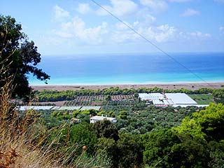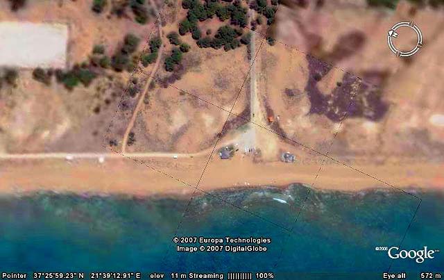 Királyi életérzés fogott el, mikor a márványfürdőszobában zuhnyozva az ablakon kinézve ráláttam a botanikus kert banánfáira. A 20 nm-es erkély rattan foteljébe behuppanva a Volosban vásárolt metaxát szürcsölve és a hegyek és a tenger csendes összhangját bámulva éreztem azt a katarzist, amit egy szerencsésen végződő üzlet okozhat. A napokkal korábban a Google Earthon kinézett elhagyatott homokos tengerpart szélén ülök egy luxus apartmanhotelben, és még maradt is pénzünk. A környék és a tengerpart felfedezése Ahogy az űrből készült felvételeken jól láttam, tényleg elhagyatott homokos tengerpart húzódik Kyparisia és Pyrgos közt. A tengerpartra Kyparisia és a tőle 35 km-re lévő Zacharro falu közt lehet lemenni kb. 15 helyen. A turizmust fellendítendő, ahol le lehet menni a tengerpartra, oda általában le van szúrva egy tábla, PARALIA felirattal, ami strandot, partot jelent. A tengerpart 20-50 méter széles, gyönyörű homokos és lassan mélyülő. A homokon tengeri hordalék, fatuskók, halászhálók, stb. gyakran előfordulnak. Mivel ez tényleg egy elhagyatott vad part. A homokos rész után vagy parlagon hagyott mezők, vagy paradicsom, olajfa, narancs ültetvények sorakoznak. Zacharo és Kyparioszia közt a teljes tengerpartot bejártuk, mivel mindig más lejárónál mentünk le a partig kocsival, ahonnan hatalmas sétákat tettünk a tengerparton. Így elmondhatom, hogy a 35 km-es homokos tengerparti szakaszt a 10 nap alatt gyalog bejártuk. A helyiek elmondták, hogy a "Taka-Taka" teknős ezen a partszakaszon rakja le tojásait. Nem láttuk sehol, hogy emiatt a partszakasz védett lett volna. Kis fekete teknős bébik hulláit találtuk meg egyik reggel a parti homokban kiszáradva. Valószínűleg nem érték el időben a tengert, és a nap heve megölte őket. Egyik sétánk alkalmával egy idősebb német pár mondta, hogy ha tovább megyünk a parton 2 km-t egy hatalmas, de döglött teknőst fogunk látni a homokban. A szerencsétlen állat hátán a páncélt valószínűleg egy hajócsavar átvágta. Még szegény pára a szárazra tudta vonszolni magát, de ott elvérzett. Hatalmas példány volt. Magassága majdnem elérte az egy métert, és hossza talán még meg is haladta azt. Turistákkal nagyon ritkán találkoztunk. Ha igen, akkor egymásra köszöntünk. Általában nyugat európai öregek voltak lakóautóval, amiket a kietlen partszakasz melletti mezőkre állítottak le. A 10 nap alatt kb. 20 ilyen lakóautóval találkoztunk. A parti út melletti kis falvak lakói élik a földművesek egyhangú életét, a turistát megnézik ugyan, de nem nagyon törődnek velük. A Zacharótól Pyrgoszig terjedő 30 km-es partszakaszra nem tudtunk lemenni, mert oda a parttól 10 km-re futó útról egy kis gyalogösvény sem vezet. Erdőség, illetve olajfaültetvények váltogatják egymást.