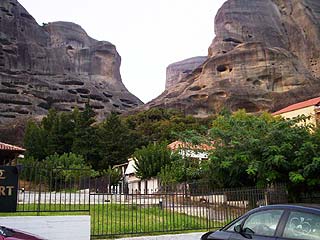 Helyenként esett az eső, helyenként sütött a nap. Menyasszonyom a nagy mennyiségű dedalontól elaludt. Órákon át tartó hegyi tortúra után, Trikkalát elhagyva megpillantottam hátulnézetből a Meteora kolostoroknak helyt adó képződményeket. Boldog voltam. A hegyekkel szembeni gyűlöletem már-már elviselhetetlen méreteket öltött, és kezdtem azon gondolkozni, hogy nem hiába vagyok én alföldi gyerek. Mondtam is magamban, mit nekem Pindosz-hegység erdőkkel vadregényes tája, csodállak, ámde nem szeretlek, lelkem hegyvölgyed nem járja. Messze ott az alföld tenger sík vidékén ott van az én hazám ott vagyok én OTTHON!!! Egy útszéli parkolóban néztem a Meteorák hegyeit, és felébresztettem a menyasszonyomat. Én a hegyek kimerítő erejétől, menyasszonyom a dedalontól kábán kószáltunk a Meteorák lábánál, de nem tudtunk mit kezdeni az élménnyel, mert a napi , főleg a hegyek okozta fáradalmak szinte teljesen kimerítettek. Két fénykép, és semmi kolostornézés, szólt a népítélet. Pedig biztosan szép lehet egy ilyen kolostor, de mi a táj szépségével is beértük. Tovább zúztunk a jó minőségű gyorsforgalmi úton Larisszáig, majd a már ismert Tembe-völgyön át betértünk első éljszakánk tengerparti színhelyéül szolgáló Platamonba. Ott a Morfeas hotelbe beesve két másodperc alattl kivettünk egy szobát 40 Eurróért, lefürödtünk, a hotellel szemben lévő étteremben ettünk egy kis bárányt 15 Euróért, és hulla fáradtan dőltünk bele az ágyba. Másnap reggel 8 óra körül keltünk kipihenten. Platamonban 2002-ben szerelmünk hajnalán, első közös külföldi nyaralásként töltöttünk el egy felejthetetlen hetet menyasszonyommal. Most a reggeli tompa hőségben, és szűrt napsütésben romantikázva sétáltunk a nyugodt kis halászfalu, még így reggel kihalt kikötőjében és tengerparti sétányán. Bepakoltunk a kocsiba, majd az autópálya szélén egy pihenőhelyen beültünk egy nagyot reggelizni. 11 óra volt ekkor! 20 órakor Magyarországra belépve hívtuk szüleinket. 23 órakor élményekkel teli, de a jóleső fáradtsággal a vállunkon érkeztünk haza a Budapesti lakásunkba.