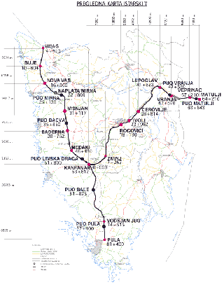 az Ucka alagúttól Puláig (A8-A9). Pontosabban Vodnjanig, egy