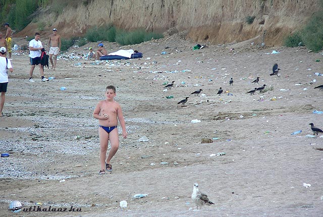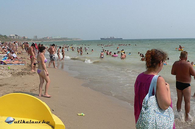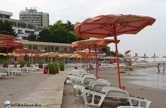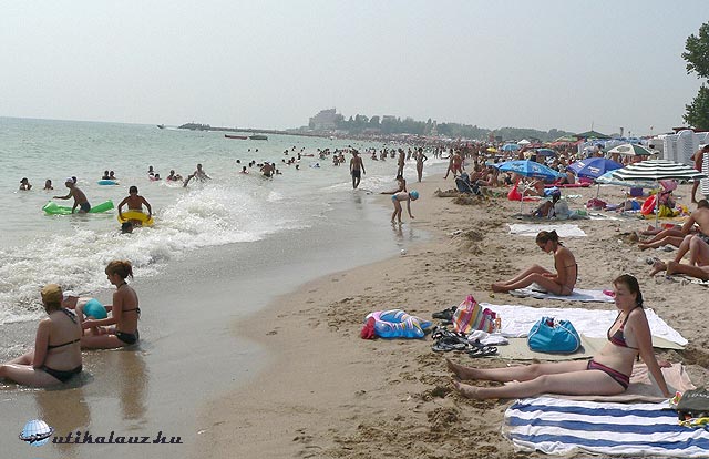 Első 2 napon Costinesti-n próbálkoztunk a stranddal, de olyan tömeg volt azon a strandon, hogy később más strandot kerestünk. Általában mindig nagyok a hullámok és mindent kivisz a partra, ezért nem tudnak beljebb menni, egy kb. 20-30 m-es sávba van a tömeg összesűrűsödve. Sokan a hullámokat úszómatraccal próbálják meglovagolni, jön a hullám, és mindenki egymás nyakába borul. Harag nincs, mindenki elnézést kér és várják a következő hullámot. Itt a legszemetesebb a part. Még esélye sincs az embernek kidobni a szemetét, mert a parttól 100 m-re van néhány szemetes. Ha besötétedik, jönnek a munkások és összeszedik a szemetet, feltakarítják a partot, sok helyen felgereblyézik a homokot, és másnap minden kezdődik elölről. Így mindenki ott ejti el a szemetet, ahol van, előfordult, hogy a műanyag söröspohár mellettem úszott ki a partra. Mivel minden nap takarítanak, nagy egészségügyi kockázatot nem rejt, de nagyon igénytelen.