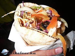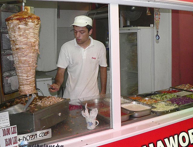 Minden este itt a bazársoron ettünk. A gyorséttermek kínálatában: sült sprotni, pizza, shaworma, hot-dog, hamburger, kebap. Édességek: Kurtos colac (kürtös kalács faszénen), baklava, valamint főtt kukorica faszénen pirítva. Viszont az ételek meglehetősen íztelenek, nagyon kevés fűszert és sót használnak, kivéve a pácolt húsoknál.