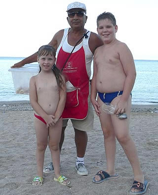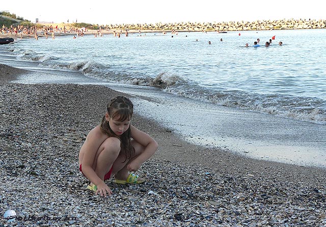 Itt nem kellett a tenger fenekéről felhozni a kagylókat, itt volt a parton bőven szebbnél- szebbeket találtak a gyerekek, csak arra kellett vigyázni, hogy papucs legyen rajtuk, mert eléggé élesek voltak.