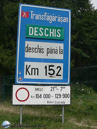 Hazafelé más útvonalon jöttünk, „útba ejtettük” a Fogarasi-havasokat. Nagyjából 20-30km kerülő volt az eredeti úthoz képest, de mindenképpen megéri, mert a látvány felejthetetlen. Az útvonal Pitestiig végig az autópályán, majd a nagy aluljáró mellett jobbra a hegyek felé. Innen egy viszonylag forgalmas, nem túl jó közút visz, sok falun keresztül. A hegyek lábánál sokszor tábla figyelmezet, hogy csak nappal járható, gondolom ennek is megvan az oka. (jobbról)