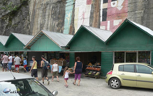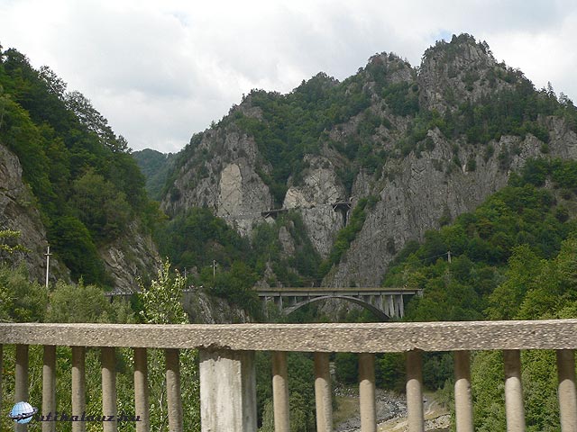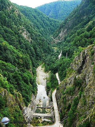 Itt is van bazár sor, meg förtelmesen csúnya reklám felfestve a sziklafalra. Tovább a szerpentinen, végig visz az út a Vidraru-tó mellett. A keleti oldali út a műút, a nyugati csak terepjáróval járható.