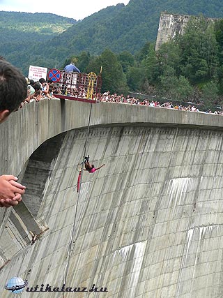 A gát 166m magas. Itt rengetegen megálltak, mert lenyűgöző, hogy a gát egyik oldalán séta hajókáznak, a másik oldalán, meg 100 m-t ugranak bunglee jumpinggal 100 €-ért.