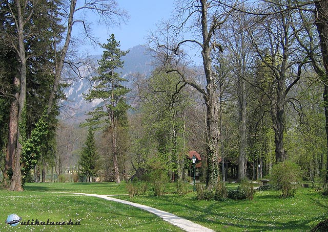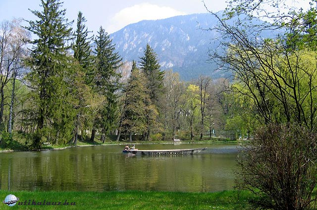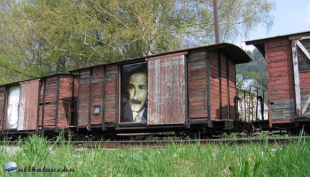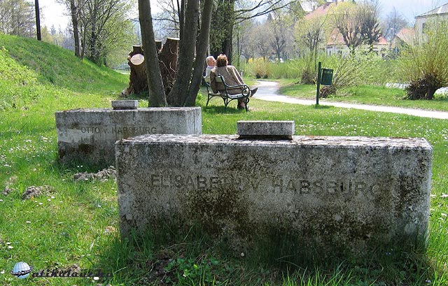 Tovább sétálunk és átmehetünk egy zöldre festett kis hídon a túlsó partra, az állomás irányába. Itt egy régi vagonon régen erre járt híres emberek képei vannak kitéve. A zöld fűben kőből készült bőröndök állnak, mindegyiken egy-egy Habsburg nevével. Ezzel is arra szeretnének utalni, hogy egykor ide érkeztek nyaralni a család tagjai.
