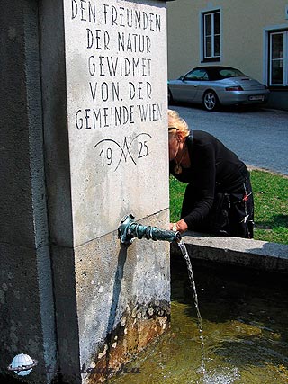 De mi most maradjunk a völgyben. Kaiserbrunn irányába megyünk tovább. Innét kapja az osztrák főváros az ivóvizét. Számos kút, többek között a Kaiserbrunntalálható itt. Megkóstolhatjuk a kutak kristálytiszta vizét és megnézhetjük a helyi „Vízművek” ingyenes kiállítását, de csak május 1-től. Így mi erről most lemaradtunk.