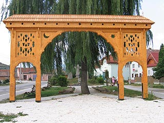 A faluban aznap ünnepelték a 18 éves fiatalokat. Székelyföldön állítólag az egész közösség megünnepli a kerek születésnaposokat, 18, 20, 30, 40 stb. Barátunk felesége pl. 40 szál havasi gyopárból álló képet kapott a várostól, a 40. születésnapjára. A táncos lányok mentek haza az ünnepségről. Leszólítottam az egyiket, mert annyira szép ruhája volt, engedje meg, hogy lefényképezzük. Megnéztük az erődtemplomot. Úgy tudom Erdélyre jellemző az erődtemplomok építése. Ez nagyon szép volt és nyitva is találtuk. Éppen akkor ment le a nap, ilyenkor szép, melengető fények vannak. A szemben lévő ház kéményén gólyák kelepeltek. Itt vettük észre először, hogy a magyar házak tetején kis kereszt van, sok helyütt ferde kereszt. De csak a magyar házakon.