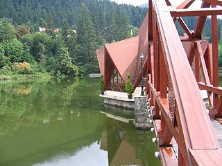 A Gyilkos-tó volt mai első állomásunk. Itt lehetett látni először, hogy sok turista van és ehhez rengeteg új fabódé, ahol ajándéktárgyakat és ennivalót árultak. (A WC-t is kétszer olyan drágán lehetett használni.) Vettünk több hatalmas kürtös kalácsot. Ilyen nagyot és finomat sem előtte, sem azóta nem ettem még, ráadásul faszénen sütötték. A tavon lehetett csónakázni, de mi ezt kihagytuk, csak nézelődtünk.