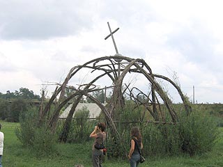 Délelőtt elmentünk a misére. Előtte megnéztük a templom melletti téren a vásárt. Mindent lehetett kapni, malacot az autó csomagtartójából, pulóvert, inget, hagymát stb. Itt teljesen magyar nyelvű mise volt, a falu színtiszta magyar. Most lett felújítva a templom és a pap jól leszidta az embereket, mert sokan nem fizettek a felújításért, el van adósodva a templom. Mise után nagy közös ebédre visszamentünk a szülőkhöz. Ebéd után sétálni indultunk az erdőbe. Rengeteg szedret lehetett szedni. Láttunk szénégetőket is.