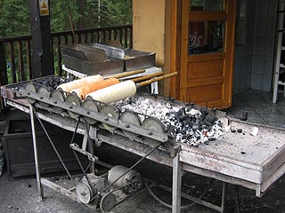 A nagy medvéket csak gyalog lehetett volna megközelíteni, vagy terepjáróval. Arról lemondtunk, különben sem voltam túl lelkes, hogy egy felnőtt medvétől esetleg csak egy villanypásztor válasszon el. Az út nagyon rossz volt, szétrázta az autót, de a táj igen szép. Végül egy kicsit közelebb jöttünk a városhoz és letelepedtünk a folyó mellett. Először összeszedtem a környéken a szemetet – volt bőven, a fiúk tüzet gyújtottak. Vastányéron micset, csirkecombot, disznóhúst sütöttünk. Két kéregető kutya is előkerült az illatokra. A patakban hűtöttük a söröket, mostuk az almát, paradicsomot. Később felmentünk a hegy közelébe. Esztenának hívják, ahol a juhászok az állatokkal laknak. Ausztriában körülbelül ezt hívják hüttének. Óvatosan kell a pásztorokat megközelíteni, mert a kutyák medvére és farkasra vannak idomítva. Nem igazán tűrik az idegeneket.