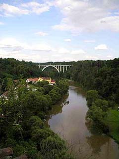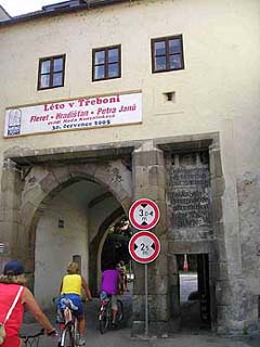 Mivel minden szerencsésen alakult a Prágából kimenetelnél és a megfelelő útra rátalálásnál, gyorsan haladtunk Tyn nad Vltavou felé, sőt maradt még időnk útközben egy városka megnézésére. Választásunk Bechynére esett. Ez egy apró városka, amelyet egyébként még részletesen is van értelme megnézni – igaz, csak idegenvezetővel lehetne, ami azért túlzás. Először a volt minorita kolostorhoz mentünk, ami most művészeti iskola, épp nyári tábor volt. Sajnos a gótikus temploma nem volt nyitva, viszont a parkja nagyon jó kis hely, remek kilátás van a kb. 30 méterrel alatta folyó szurdokszerű medrére és a völgyhídra. Van itt egy reneszánsz várkastély is, ennek udvarára bejutottunk, annak ellenére, hogy már bezártak. Ebben van egyébként a porcelánmúzeum – a városban 3 kerámiagyár is van, vagy volt. A plébániatemplom is gótikus, bár barokkosításon is részben átesett – de így is volt fényképre való része. A tornya inkább reneszánsz jellegű.