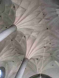 Jó kis gótikus részletek láthatók – kápolnának tűnt az egyik rész, de a későbbi stílusok is tetszetősek. A múzeumba nem mentünk be, eléggé elcsigázottak voltak különösen a gyerekek – ekkor már 2 óra körül járt az idő. A várból a Szent Jakab-templomba mentünk, amely a németek temploma volt. XIII. századi csodaszép gótikus 3 hajós templom. Légiesen karcsú oszlopok, nagyon magas hajókat alkotnak, a szentély körül teljesen körülmegy a szélső hajó, s a boltozata pedig elnyűgöző. Ez a templom sokkal jobban elvarázsolt, mint a katedrális. Egyáltalán nem katonás szimmetria jellemzi a hajó és a szentély boltozatát is, de a szentély fölötti óriási fantáziával, elegánsan szinte szövetté szőve. Persze ezt a templomot is körbejártuk, a véleményünk természetesen nem változott meg róla – de az épület belülről sokkal többet mutat.