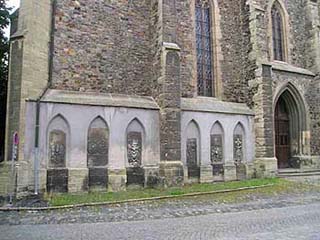 , a cseh történelemben kétszer is szerepet játszott gótikus templomával. Tornya már messziről utat mutatott, bár kissé becsapós volt, hogy egy neogót templom is van, amely igencsak hasonlít a régihez – ez a protestáns régi templom, mert van egy még újabb – kissé szocreál. A gótikus templomba úgy jutottunk be, hogy két hölgy rendezte a templomot, s ők nyitották ki nekünk az ajtót. Sajnos nem engedtek videózni – bár sem képeslap, sem másféle anyag nem volt kapható a templomról. Egyébként egy szép, néhol megmaradt freskókkal rendelkező templom, amelynek reneszánsz a szószéke, és néhány külső része.