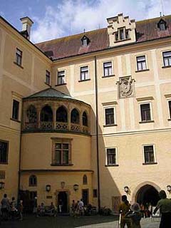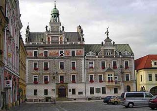 A főtér színesre festett lábasházainak valóban remek hangulatuk van, ezek természetesen barokk és reneszánsz külsejűek, sok esetben gótikus épületeket rejtenek. Itt is van sgraffitós díszítésű, nekem ezek tetszettek legjobban. A tér végén van a gótikus Szent Jakab-templom, amelynek jó magas tornyából szép kilátás nyílik a főtérre és a lábánál fekvő várra. Maga a templom egyszerű, tiszta vonalvezetésű, viszonylag kevés barokkizálással terhelt. A vár gótikus volt, amelyet reneszánsz kastéllyá alakítottak. Van pár udvara, ezek közül egy nagyobbacska, szép loggia az egyik oldala, nyári színház van benne. A másik udvar egy igen nagy területű, szép kerttel, és a körülvevő épületek is szép harmonikusan illeszkednek egymáshoz.