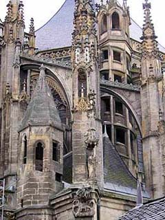 A főtérhez igen közel van a Szent Móric-templom. Két, különböző formájú, erődszerű csonkatornya robosztus külsőt ad neki, de belépve a gótika könnyedsége elvarázsolt. Híres orgonája van, de nem hallottuk – egy Cesar Franck CD-t vettünk itt a magyarul is tudó őr bácsinál – a magyarul tudóval való találkozás az egyetlen volt egész utunk során. A bordák az errefelé nem ritka erősebb rózsaszínnel voltak kiemelve, és még némi freskó is maradt a régi időkből. Nagy barokk orgonaszekrényben van a hangszer, de a szószék (valószínűleg neo)gótikus.