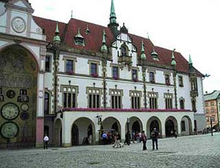 Olomoucban (Olmütz) kis keresgélés után az óváros szélén csak sikerült találni egy ingyenes parkolóhe-lyet, és még árnyékos is volt. Ahogy mentünk “torony eránt”, egy részben magyar nyelvű emléktáblára lettünk figyelmesek: Bolyai János, a matematikus itt szolgált tisztként. Elsőként a Szent Vencel katedrálist néztük meg, amely oda-vissza gótikus, ami azt jelenti, hogy az eredetileg románnak indult bazilikát gótizálták a XIII. században, majd barokkizálták, s végül a XIX. században kapta vissza – valószínűleg nem teljesen – a gótikus mivoltát. A berendezés így is eléggé barokk, gazdagon faragott padsorai, a két Premysl-házi király síremlékével együtt azért nem rossz. A Premysl-ház a mi Árpád-házunknak felel meg, a kihalásuk is szinte azonos évre esik – bocsánat, ha tudja mindenki. Az altemplomban van egy kicsi, de jó kiállítás, gótikus faszobrokkal és barokk kegytárgyakkal – az előbbiek jobban tetszettek.