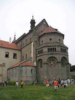 A leghíresebb épület a Szent Prokop-kolostortemplom. Román és gótikus elemek egyaránt vannak benne, kívül inkább a román, belülről pedig a gótikus az inkább jellemző – természetesen itt is van barokk beütés – főként a homlokzaton rondítottak. A bejárat az oldalsó, ún. Paradicsom-kapuján keresztül van – amely egy közepesen dúsan díszített kapubélletes bejárat előtt emelt fedett rész, kívülről román, de a boltozata már gótikus. A templom háromhajós, és a szentélyből egy kápolna nyílik. A gótikus elemeket – érzésem szerint részben újra kibontottak – hangsúlyozták, elég különös vonalvezetése van, két félig lezáró fal is van, egy a szentély előtt közvetlenül, egy pedig valamivel előbb. A szentély is a két stílus ötvözete, alul román oszlopsor, felette gótikus ablaksor – részben csúcsíves, részben körablak -, még felette román ablaksor, még felette kicsi román körbevilágító ablaksorral – persze a boltozat gótikus. A kupola erőteljes, négyzet feletti, így teljesen szimmetrikus. A kápolna 1250-ből való, a freskói középkoriak – igen díszesek, és nagy része megmaradt. Az altemplom is méltó az egészhez, hihetetlenül erőteljes, kis fesztávolságú ívek, néhol még a régi faboltozat is megvan.