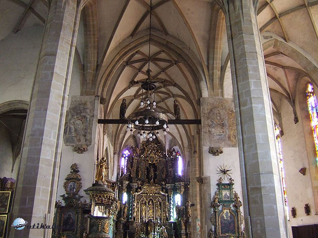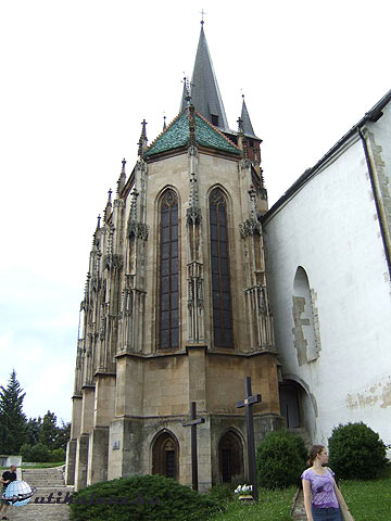 Belseje nagy élmény, különösen – a helyi leírás szerint – a világ legmagasabb, 18,62 m magas gótikus szárnyas oltára. 1502-03-ban Lőcsei Pál mester alkotta, a kor szokásainak megfelelően segédeivel együtt, ő a nürnbergi származású Veit Stoss (a lengyeleknek Krakkóban Wit Stwosz) tanítványa. De még több kisebb gótikus (és barokk) mellékoltár és freskó is a régmúlt dicsőségét hirdeti, az orgonát is beleértve. Van magyar nyelvű leírás is – fényképezni még vaku nélkül sem szabad, ami nagy kár. Kb. 25 percet lehet benn tartózkodni, ami nézelődésre elég is. A templom mögött van Pál mester háza, ahol az életéről lehet olvasni és számos alkotásának másolata is el van helyezve, így testközelből láthatjuk mindazt a szépséget, amit a templomok homályában, sok méter magasságban nem nagyon. Térképen is mutatják, hogy hol vannak még alkotásai, amik jó iránytűnek is bizonyulhatnak a kirándulások során. A legmagasabb szárnyas oltárok listáját is jó végigböngészni, többet is láttunk már közülük, így azok emléke is felidéződött bennünk. Ez egy kis épület egyébként, így a saját tempója szerint inkább gyorsabban végignézi mindenki.