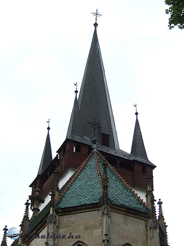 A nap utolsó helyeként még Igló következett. Itt is az orsó alakú főtér a város központja, melynek belső részén a két templom – a katolikus és az evangélikus -, a városháza és kicsit lejjebb a Vigadó áll. A katolikus plébániatemplom gótikus, 1380-ban kezdték építeni – sajnos csak misekor van nyitva, és hiába igyekeztem erre a napszakra időzíteni, nem nyertünk. Belül középkori freskók, szobrok és keresztelőmedence várt volna ránk. (Hét éve mise előtt be tudtam szaladni pár percre, így most sajnáltam, hogy családom nem láthatja.) A templom nevezetessége még Szlovákia legmagasabb, 84 méter magas templomtornya, melynek mellvédjéről tiszta időben a Magas-Tátra csúcsait is tisztán látni lehet. A teret körülölelő épületek között számos felújított műemlék is van, melyek nagy része barokk stílusú.