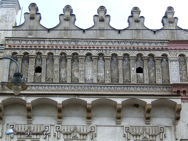 Az evangélikus kollégium épülete történelmi események tanúja, ma szépen felújítva áll, sarkán Caraffa tábornok 1687-es vérengzésének, 24 gazdag eperjesi polgár áldozatának emléktáblájával. Ez gyakorlatilag rablógyilkosságnak és koncepciós pernek minősülne. A város jelentős központ volt és maradt a mai napig, a teret övező sok-sok épület nagy része műemlék, többnyire reneszánsz és barokk külsejű emeletes házak/paloták, melyekhez történelmi személyek (pl. Rákóczi, Bercsényi László – a francia huszárság megalapítója, Thököly, Comenius, Eötvös József), illetve események kötődnek. Ha valaki részletesen meg akarja ismerni a házak történelmét, akkor talán egy nap sem lesz elegendő rá, ha nem – mint mi -, akkor egy nagyon jó sétát jelent több megállással. Nekem legjobban a sgraffitós díszítésű épületek tetszettek. Ahogy jeleztem, a főutca le van zárva előttünk, mezei autósok előtt, ezt be is tartatják a helyi szervek (egyébként igazuk van), vagyis a környező utcákban érdemes parkolót keresni, ami nem feltétlenül egyszerű mutatvány.